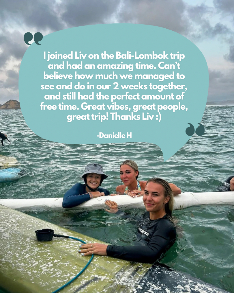 12 days of island life — surf lessons in Lombok, chasing waterfalls in Bali, snorkelling Gili T, and living the tropical adventure.
